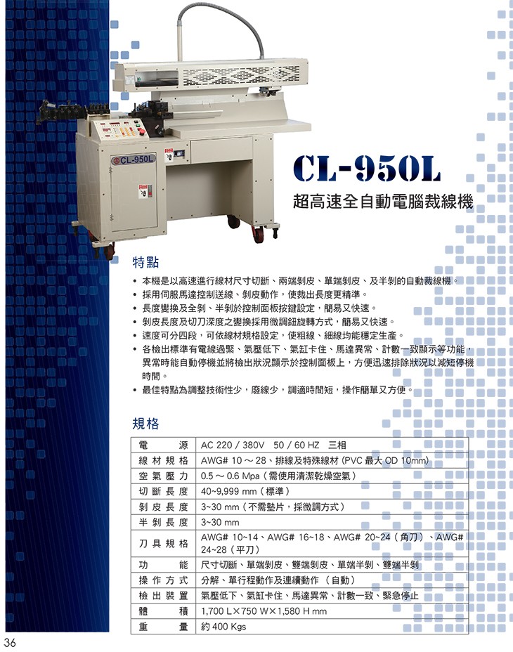 CL-950L超高速全自动电脑裁线机采用电脑控制方式,是精度更准确,操作更简单,性能更稳定,欢迎来电订购!